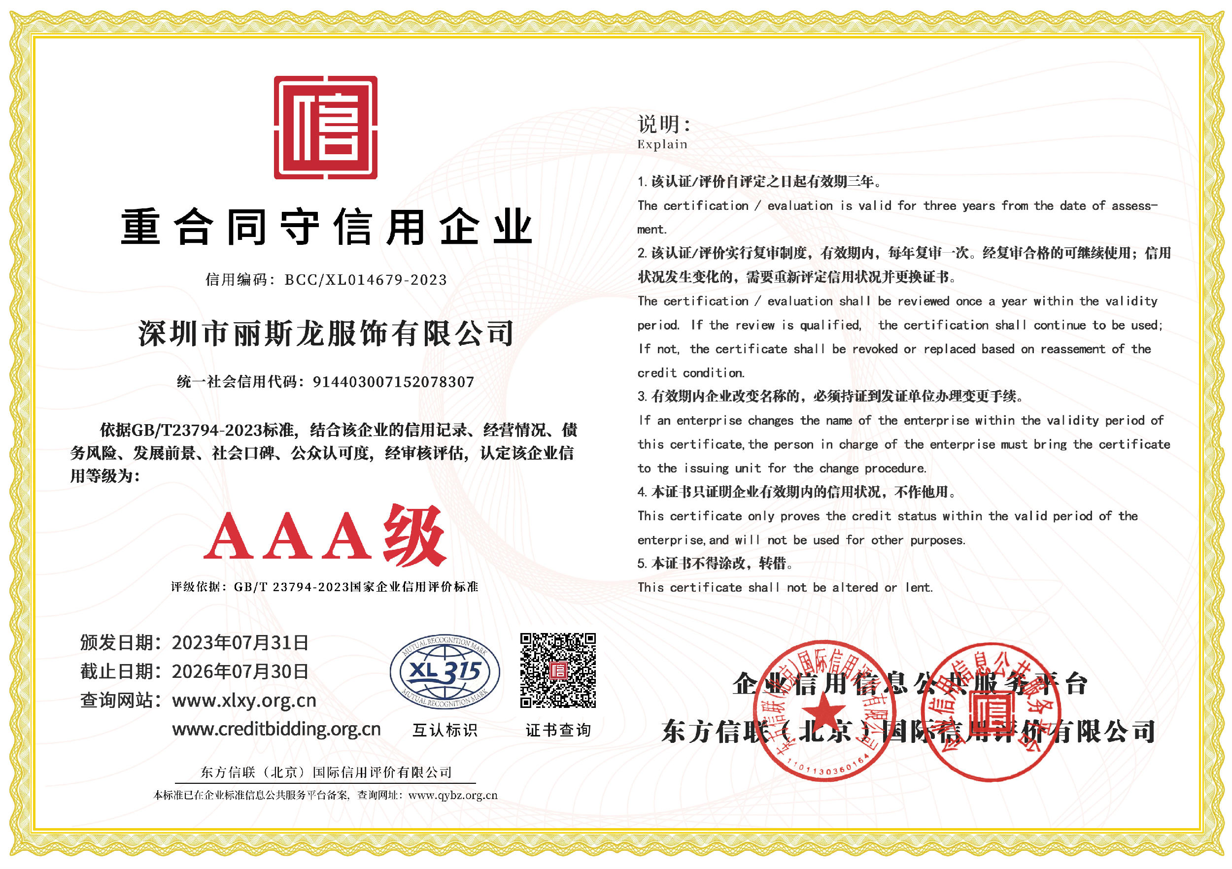 上一篇:AAA級企業(yè)信用等級證書